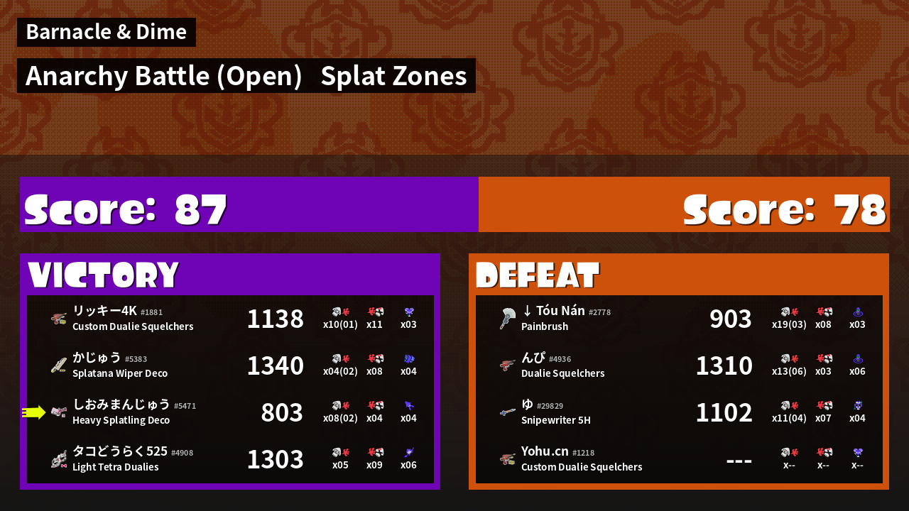 | Mode | Splat Zones - Anarchy Battle (Open) | ||