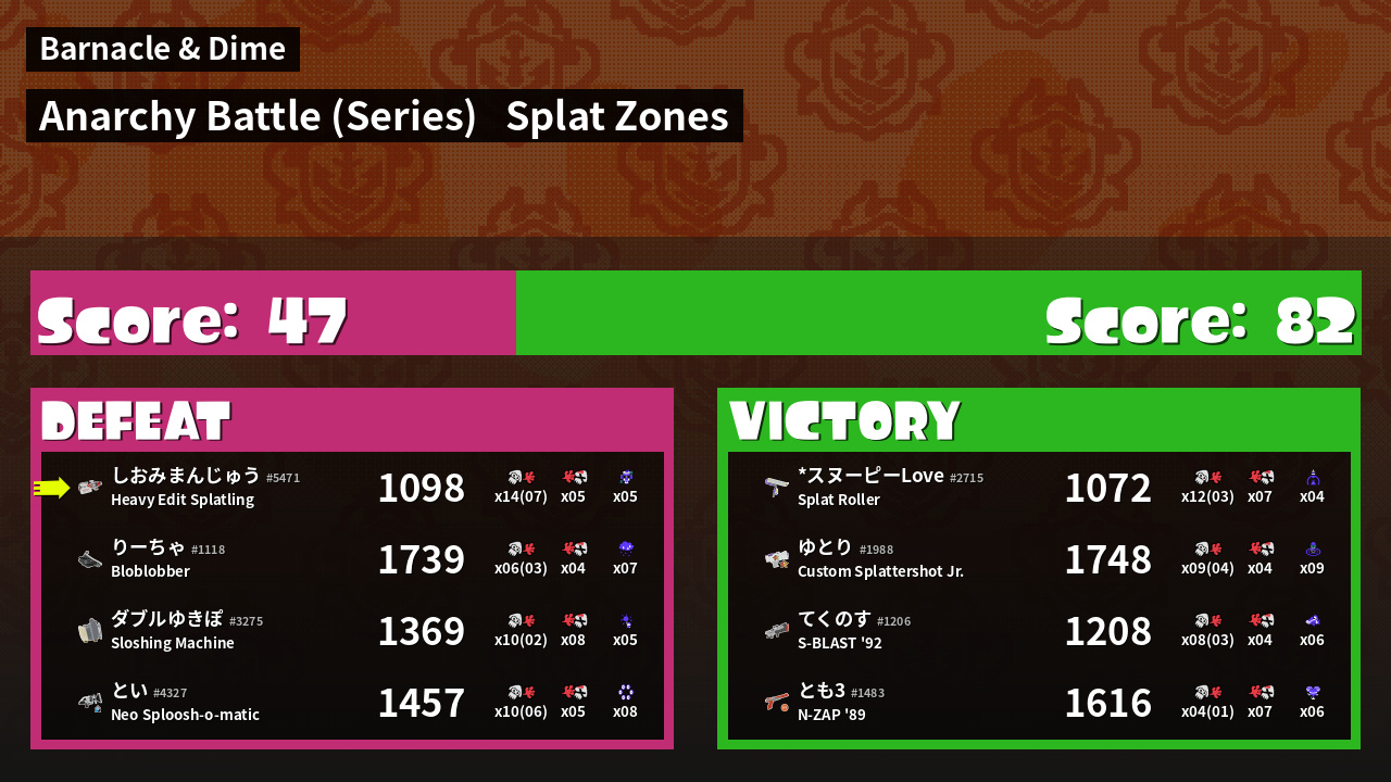 | Mode | Splat Zones - Anarchy Battle (Series) | ||