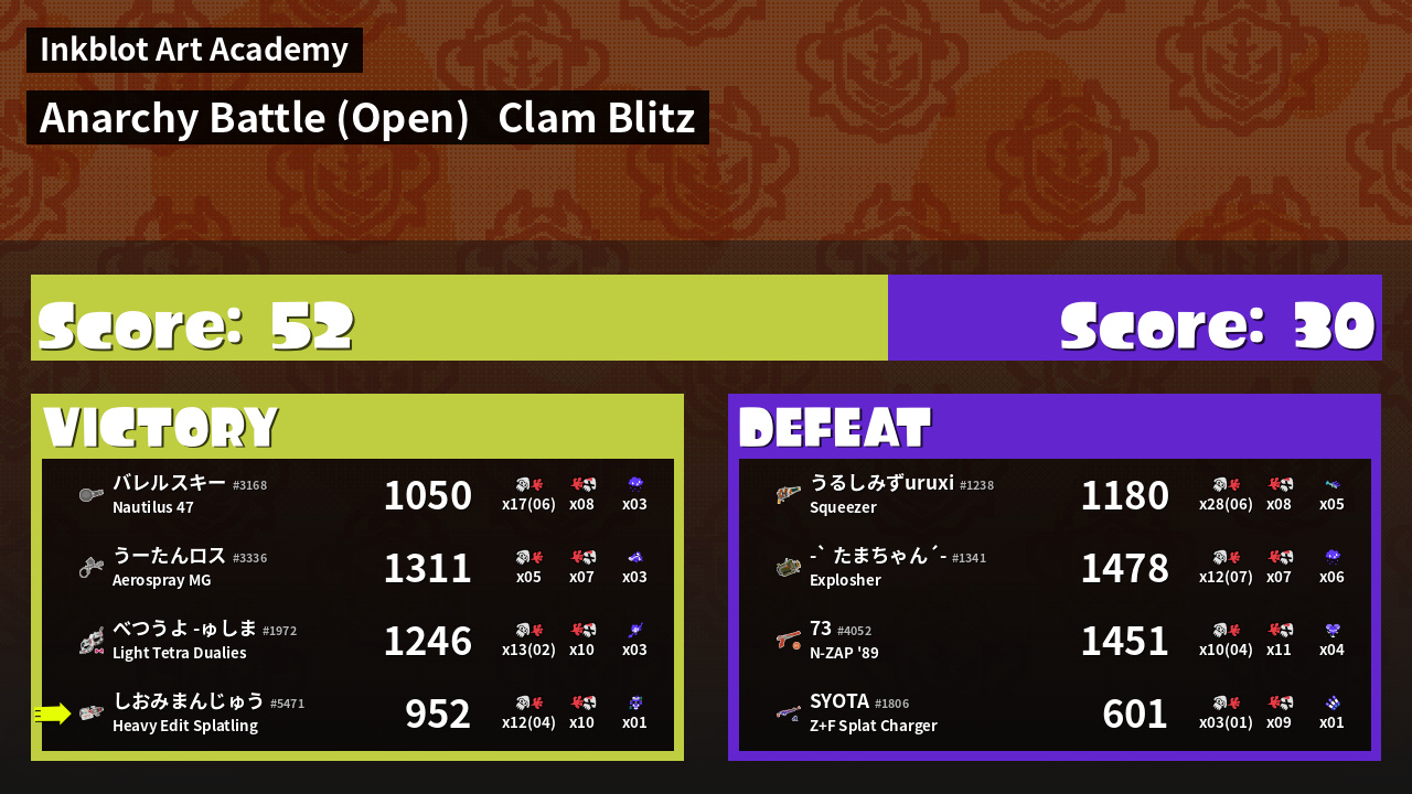 | Mode | Clam Blitz - Anarchy Battle (Open) | ||