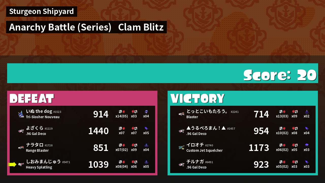 | Mode | Clam Blitz - Anarchy Battle (Series) | ||