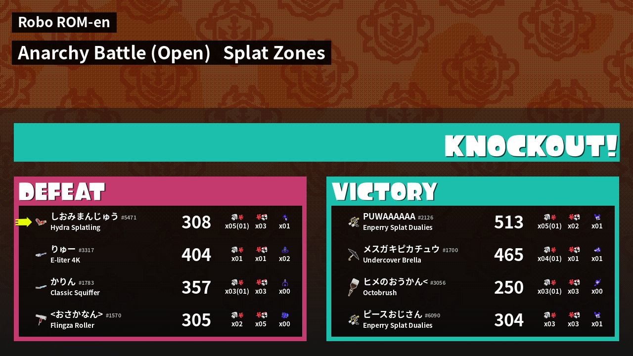 | Mode | Splat Zones - Anarchy Battle (Open) | ||