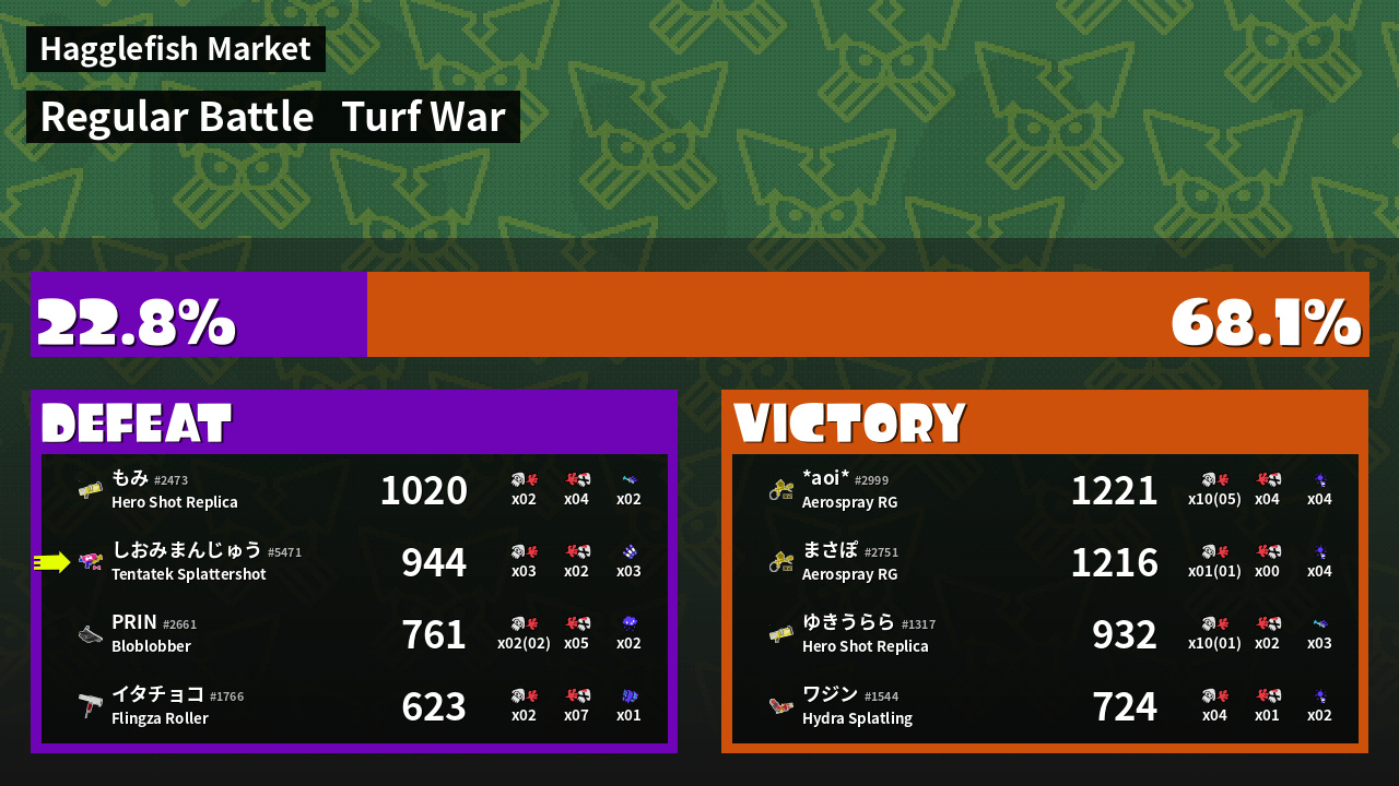 | Mode | Turf War - Regular Battle | ||
