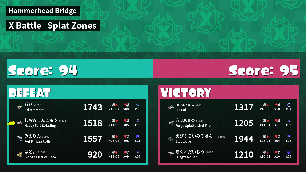 | Medals | #1 Super Jump Spot #1 Splat Assister #1 Tacticooler User | ||