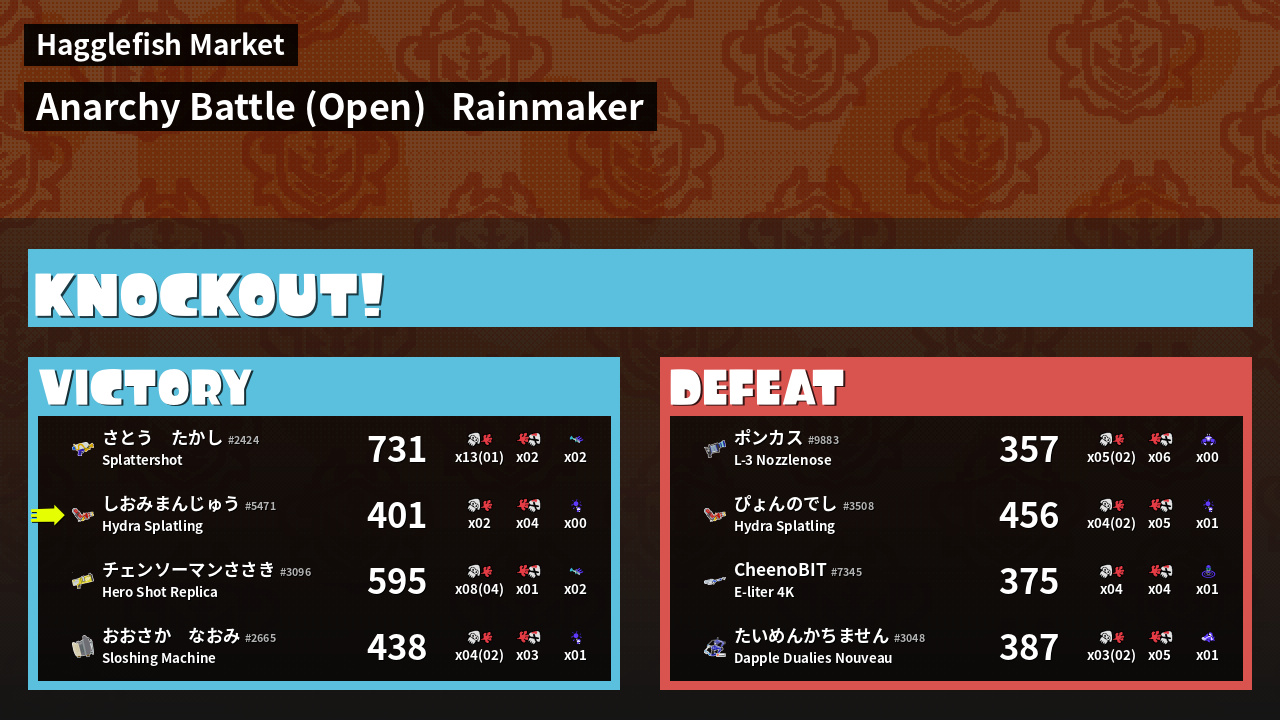 | Mode | Rainmaker - Anarchy Battle (Open) | ||