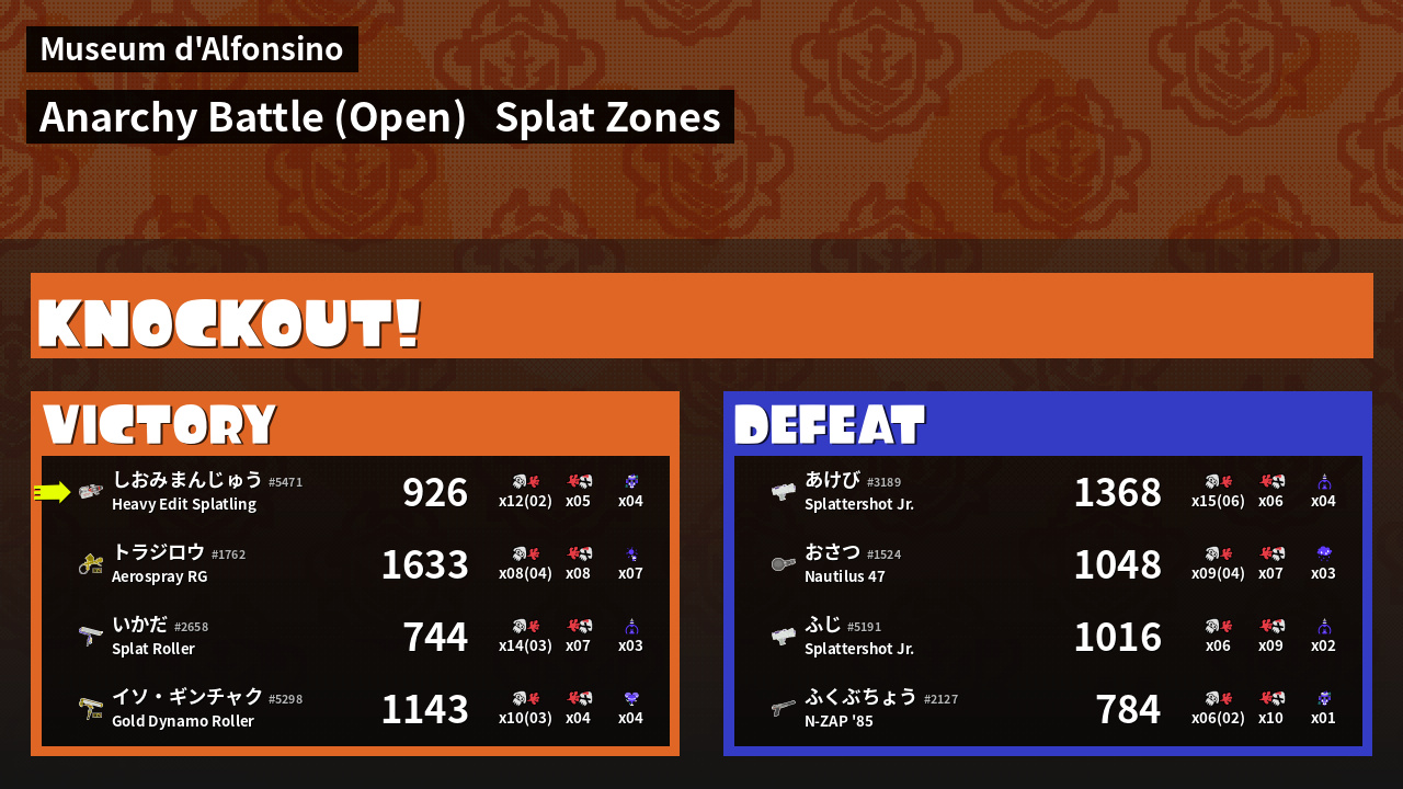 | Mode | Splat Zones - Anarchy Battle (Open) | ||