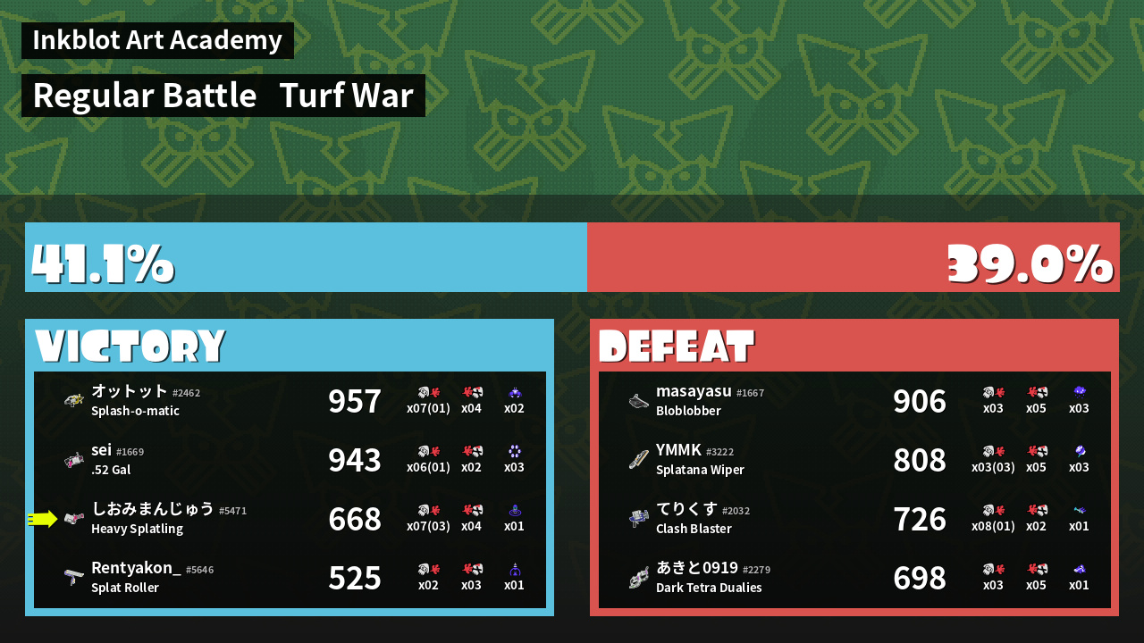 | Medals | #1 Overall Splatter #1 Splat Assister #1 Base Defender | ||||