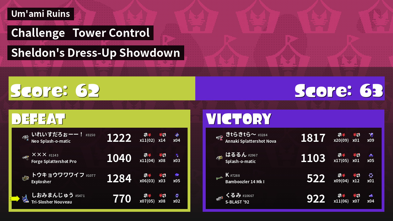 | Medals | #1 Splat Assister #1 Tower Stopper #1 Tacticooler User | ||