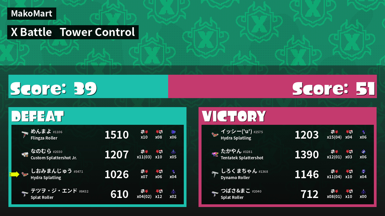 | Mode | Tower Control - X Battle | ||