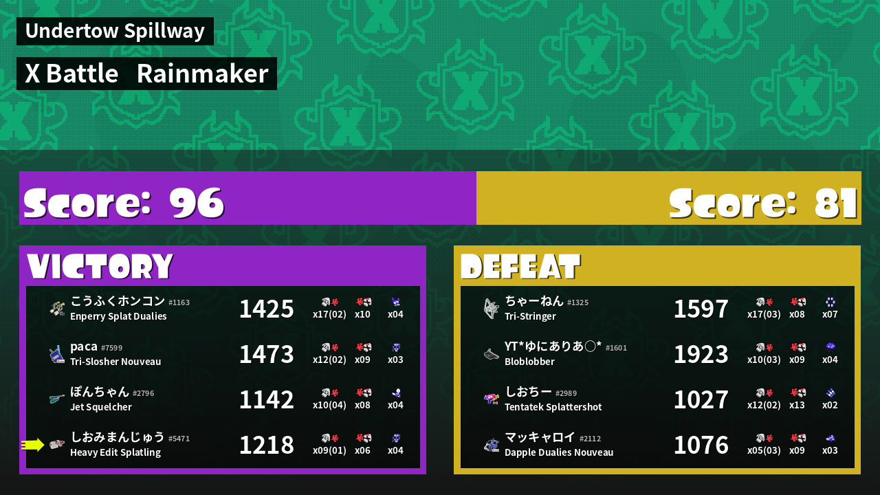 | Mode | Rainmaker - X Battle | ||