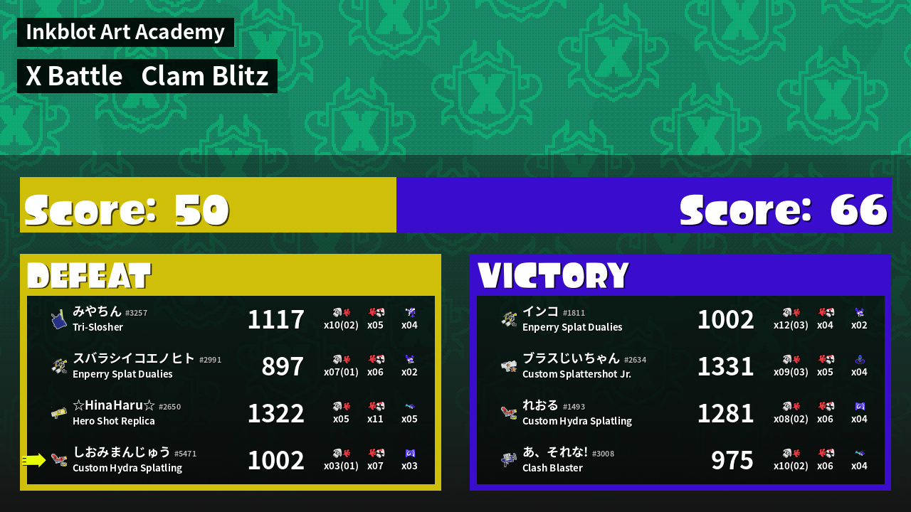 | Mode | Clam Blitz - X Battle | ||