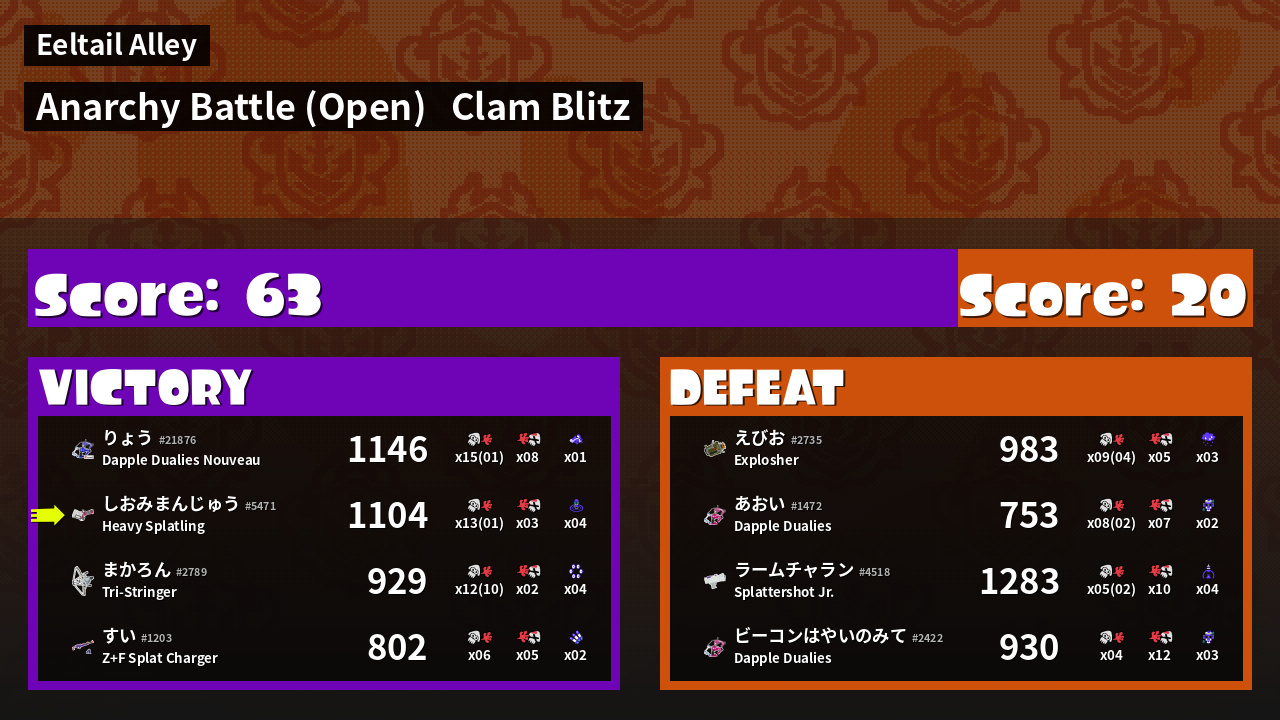 | Mode | Clam Blitz - Anarchy Battle (Open) | ||