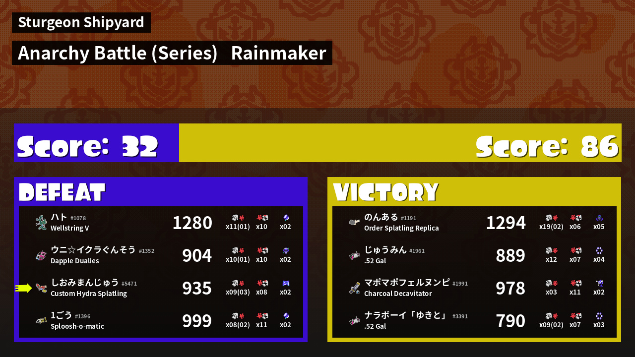 | Medals | #1 Score Booster #1 Splat Assister #1 Splattercolor Screen User | ||