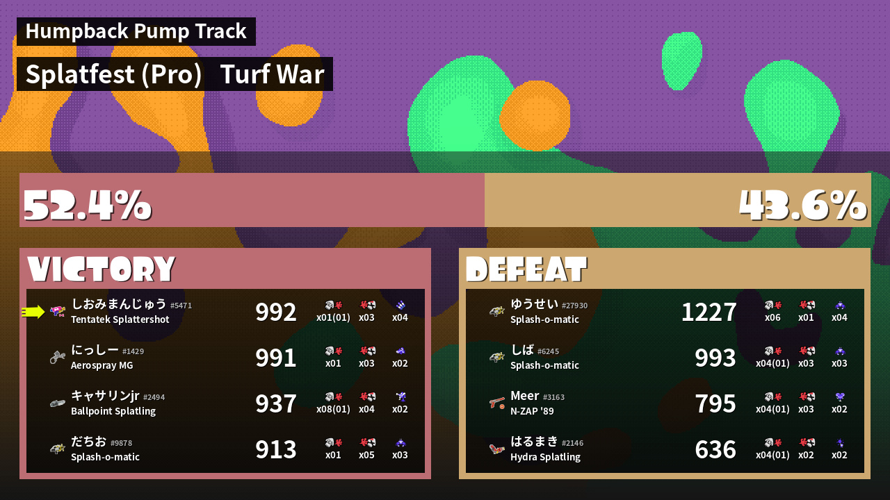 | Mode | Turf War - Splatfest (Pro) | ||