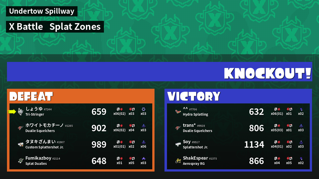 | Mode | Splat Zones - X Battle | ||