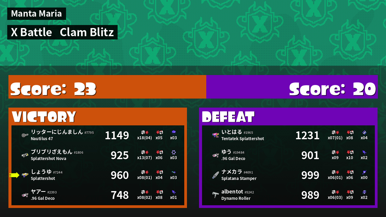 | Weapon | Splattershot ( Suction Bomb / Trizooka) | ||