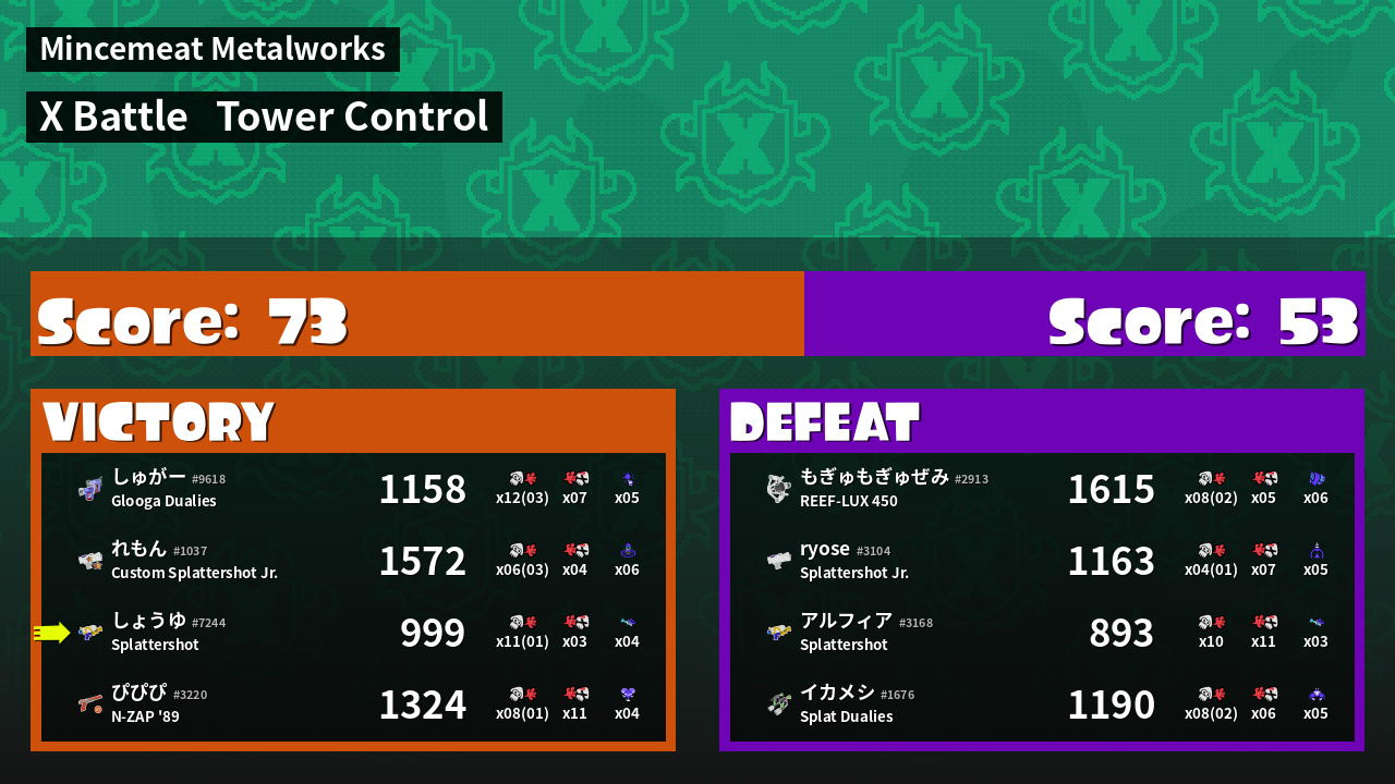 | Mode | Tower Control - X Battle | ||
