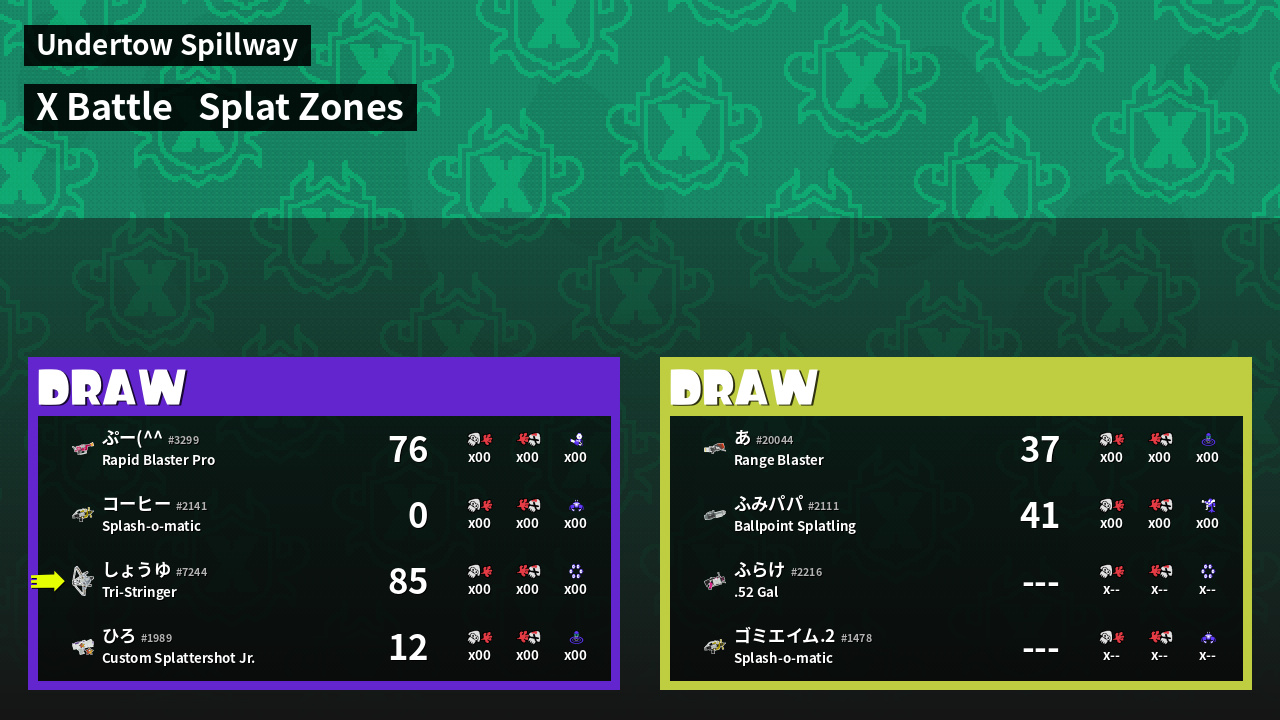 | Mode | Splat Zones - X Battle | ||