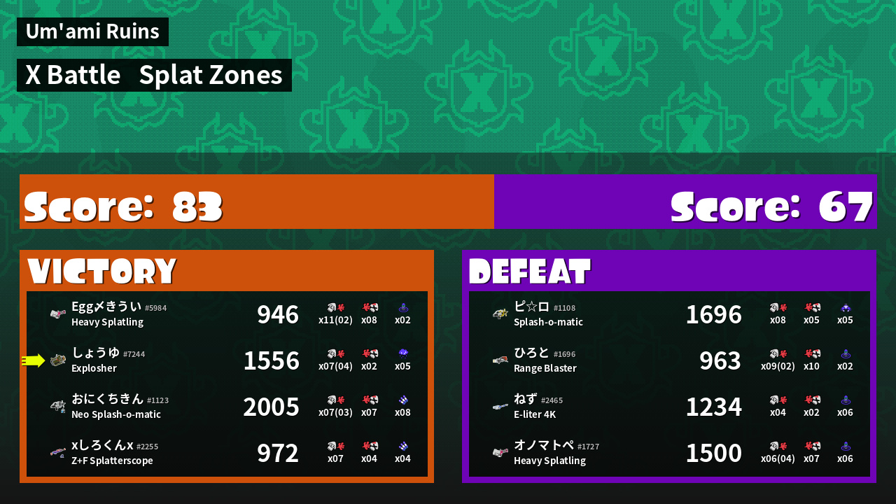 | Medals | #1 Popular Target #1 Super Jump Spot #1 Splat Assister | ||