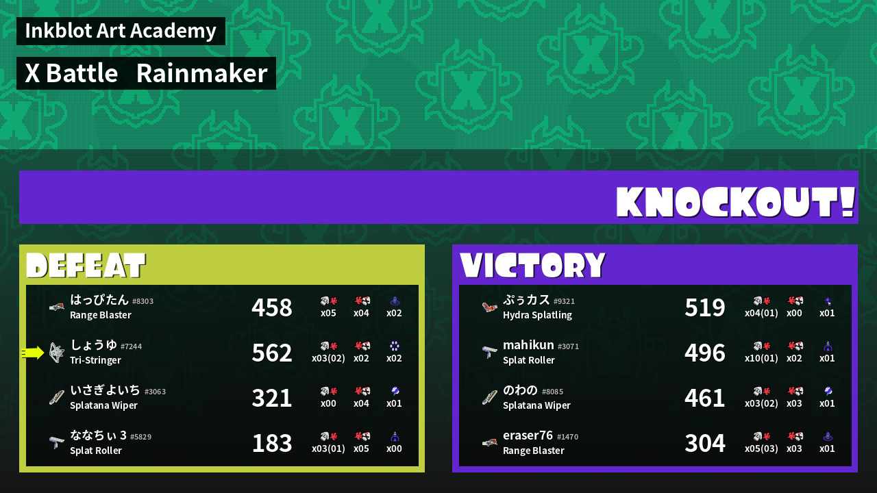 | Medals | #1 Turf Inker #1 Popular Target #1 Splat Assister | ||