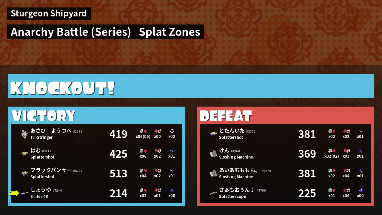 | Mode | Splat Zones - Anarchy Battle (Series) | ||||