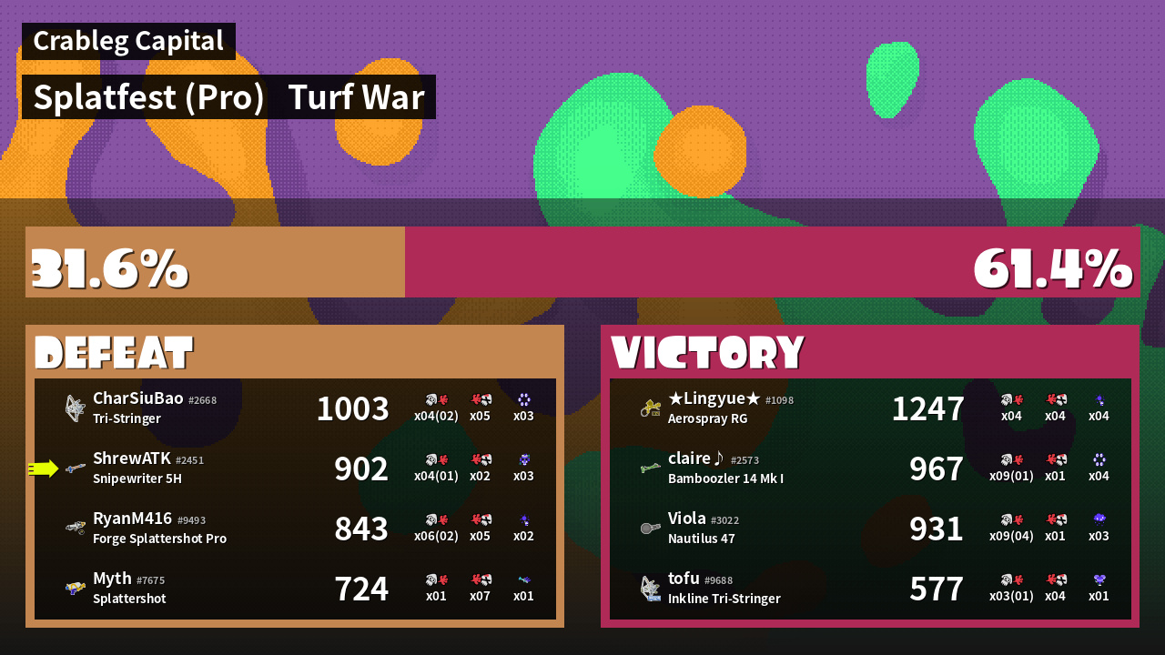 | Mode | Turf War - Splatfest (Pro) | ||