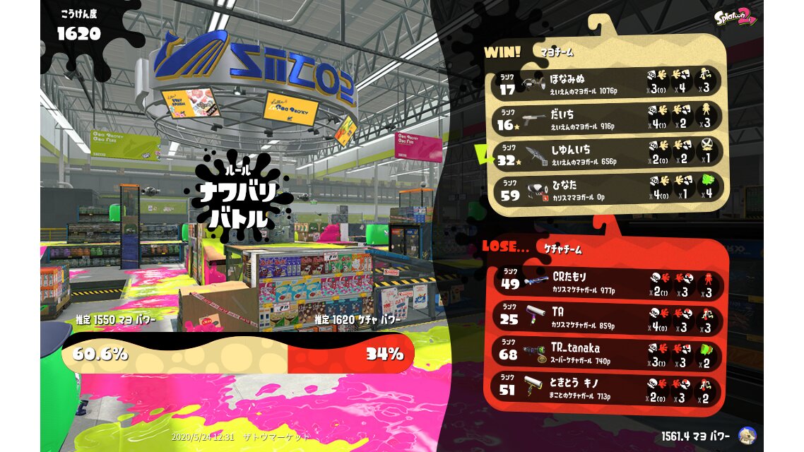 | Team マヨ Win Streak: 0 | 2,648 | 12 / 9 | 1.33 57.14% | ||||