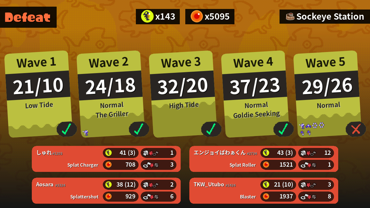 | Boss Salmonid | 13 | 15 | 14 | 11 |