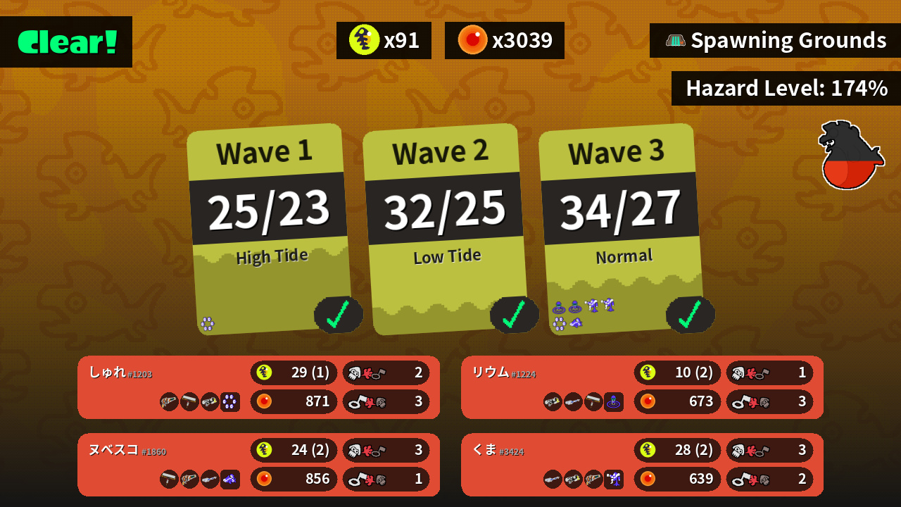 | Weapons | Squeezer Carbon Roller Splattershot Nova | E-liter 4K Splattershot Nova Squeezer | Carbon Roller Squeezer E-liter 4K | Splattershot Nova E-liter 4K Carbon Roller |