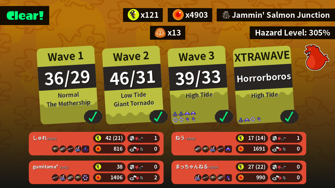 | Boss Salmonid | 8 | 15 | 9 | 11 |