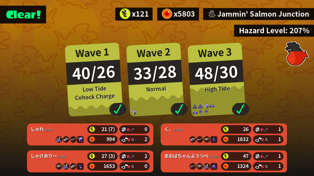 | Boss Salmonid | 11 | 15 | 23 | 21 |