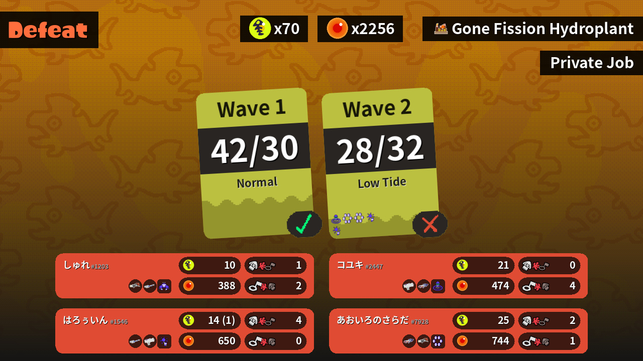 | Boss Salmonid | 15 | 13 | 12 | 15 |