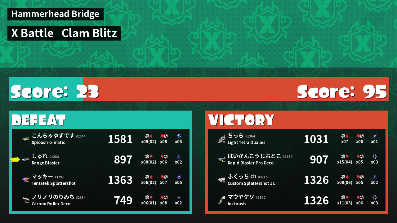 | Medals | #1 Clam Carrier #1 Popular Target #1 Splat Assister | ||
