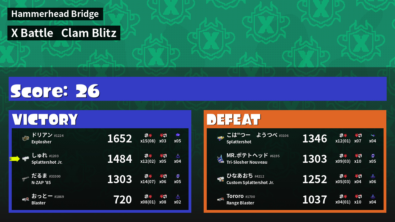 | Medals | #1 Score Booster #1 Clam Carrier #1 Enemy Splatter | ||