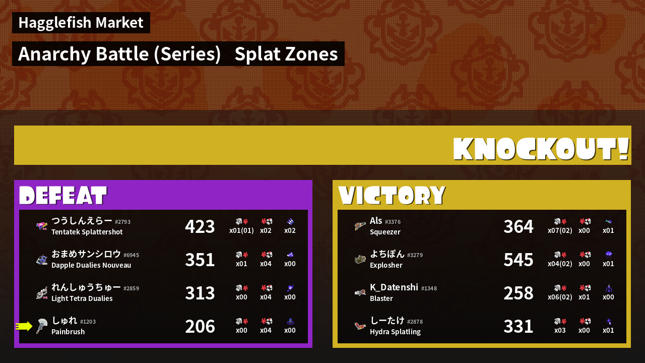 | Mode | Splat Zones - Anarchy Battle (Series) | ||