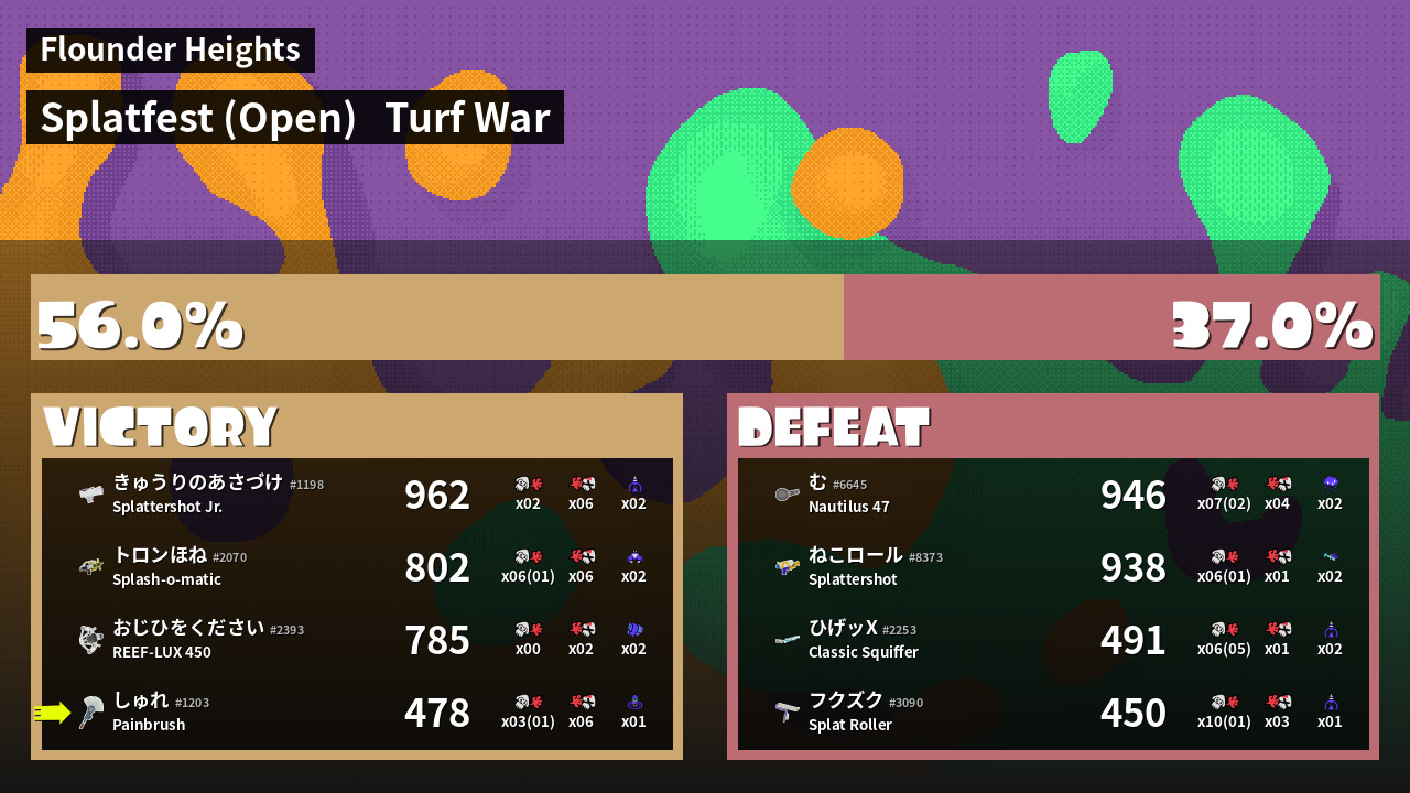 | Medals | #1 Splat Assister #1 Damage Taker #1 Wave Breaker User | ||