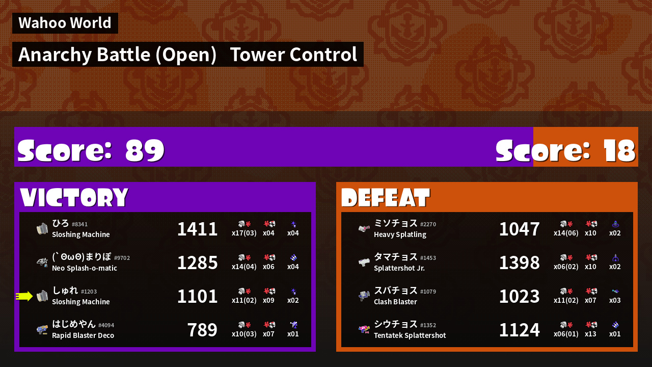 | Mode | Tower Control - Anarchy Battle (Open) | ||