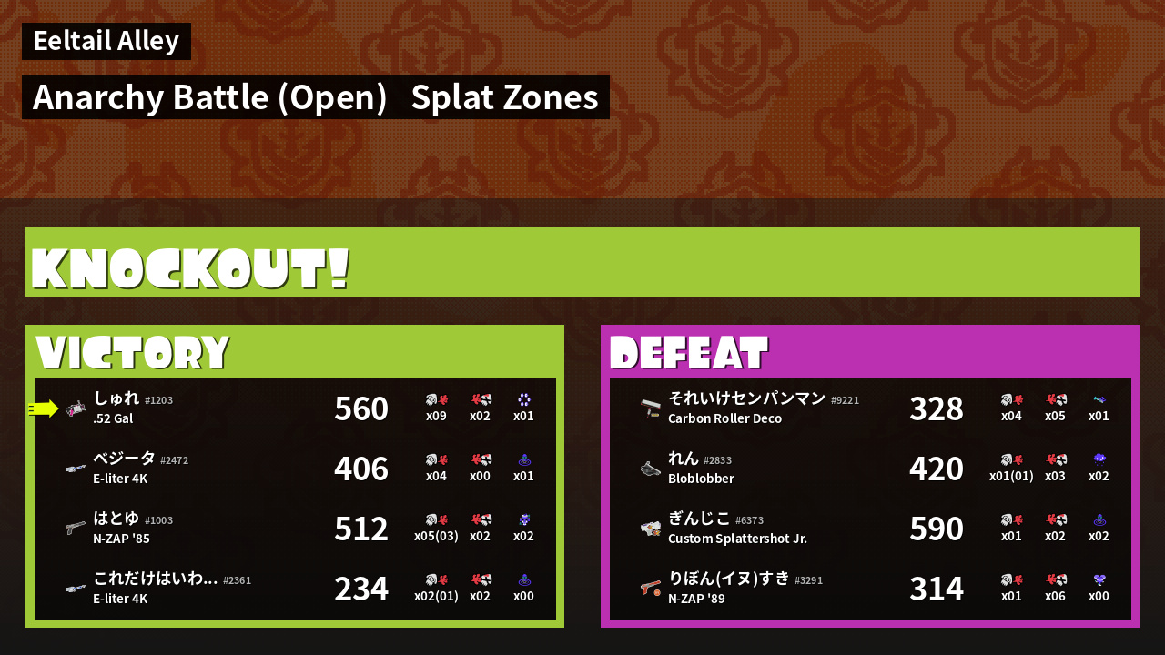 | Mode | Splat Zones - Anarchy Battle (Open) | ||
