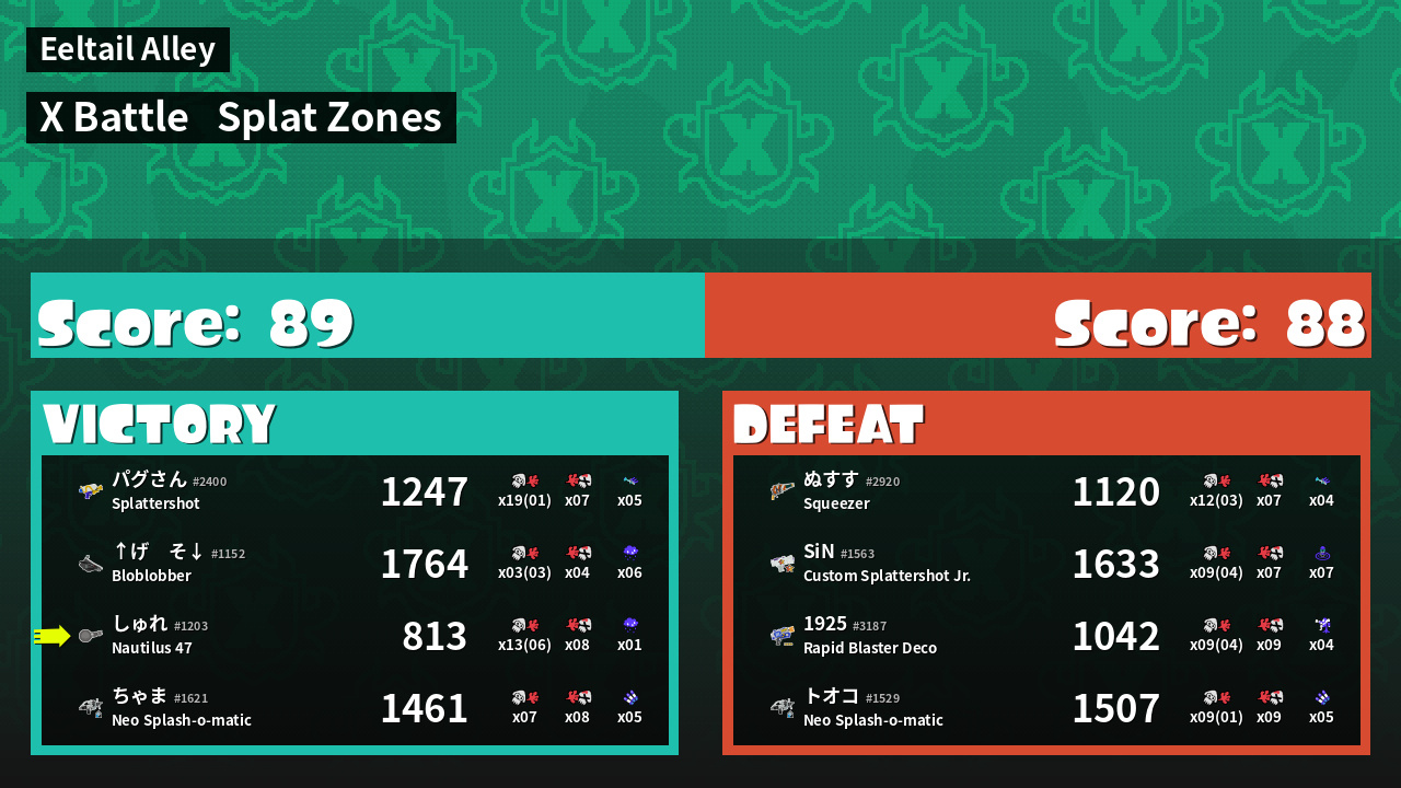 | Medals | #1 Splat Assister #1 Splat Zone Hero #2 Overall Splatter | ||