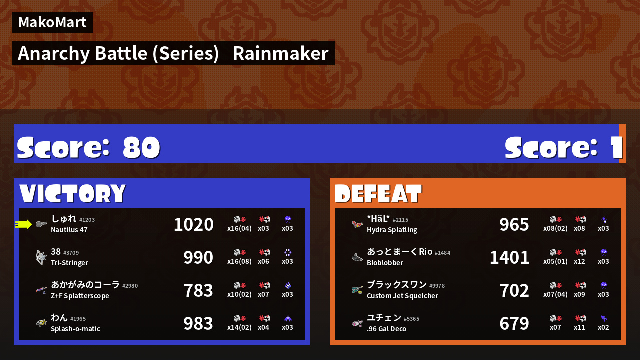 | Mode | Rainmaker - Anarchy Battle (Series) | ||