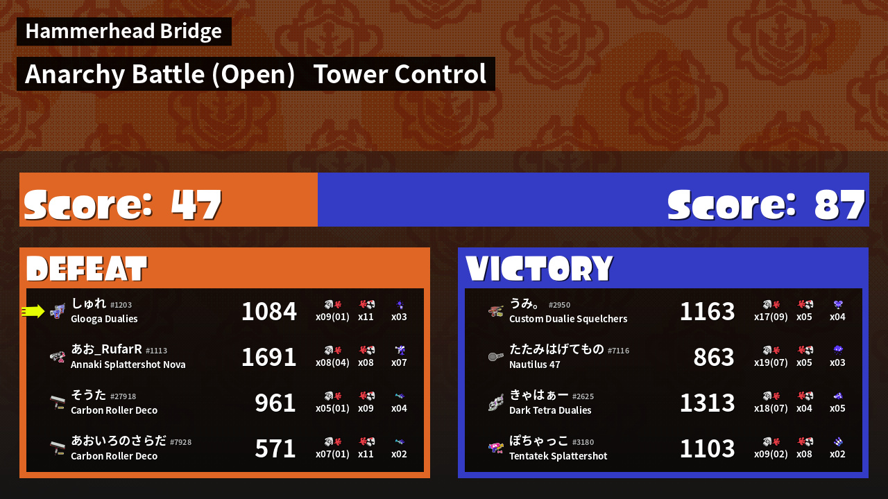 | Mode | Tower Control - Anarchy Battle (Open) | ||