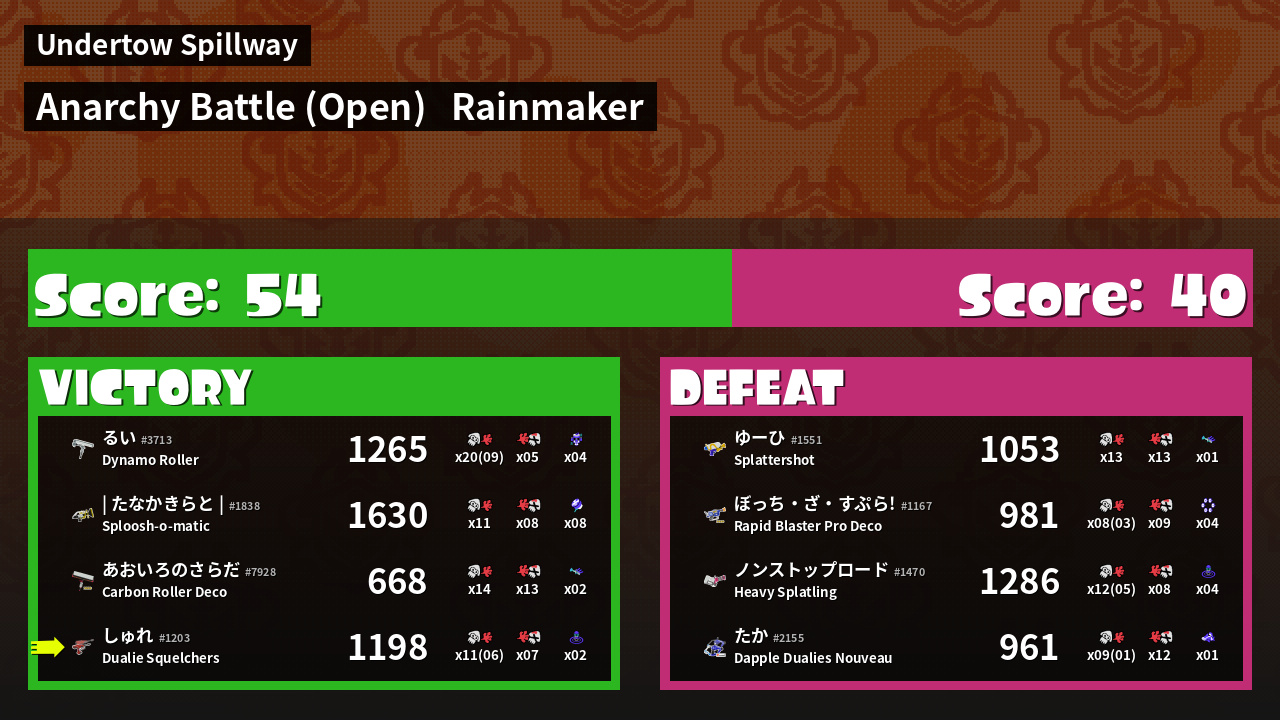 | Mode | Rainmaker - Anarchy Battle (Open) | ||