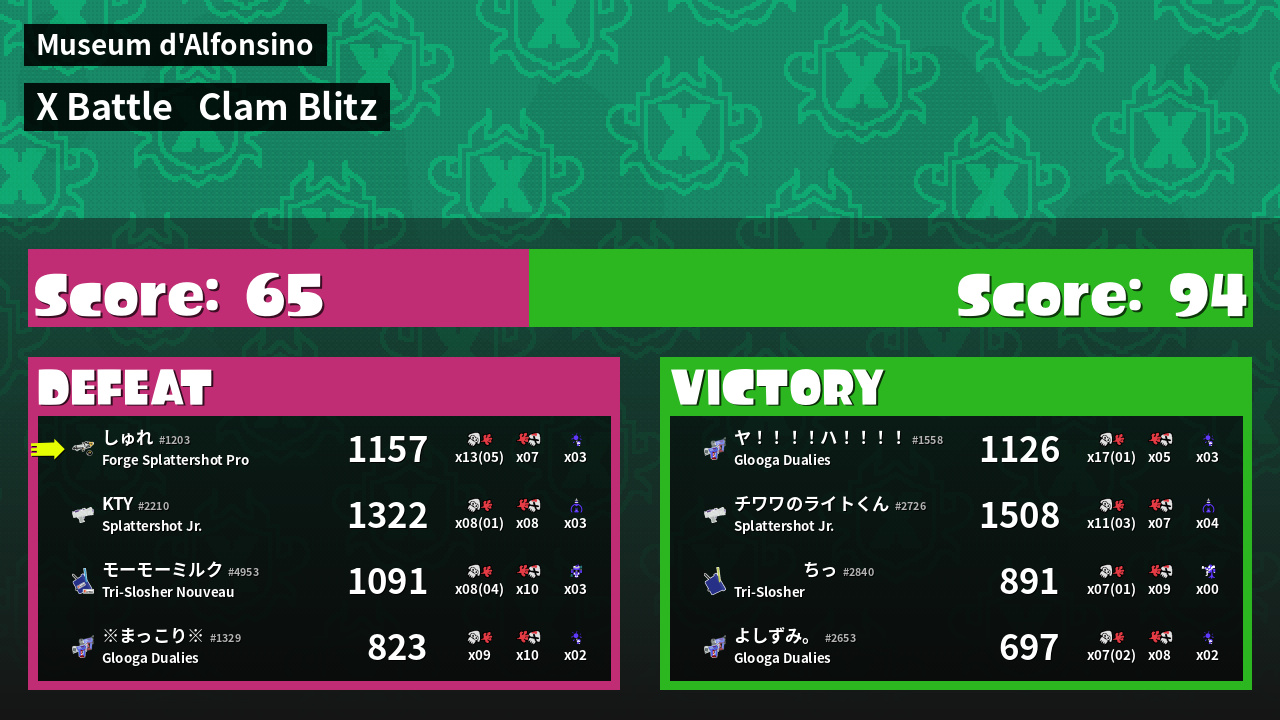 | Mode | Clam Blitz - X Battle | ||
