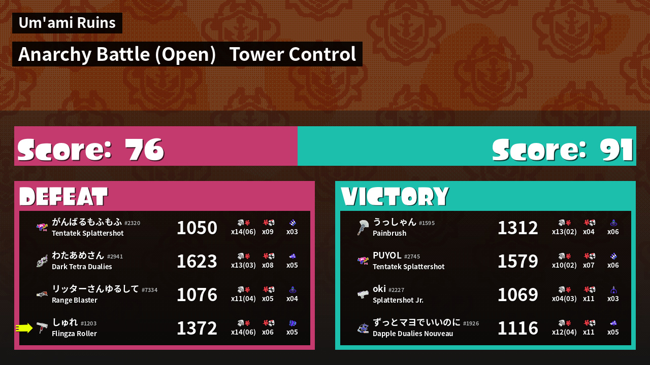 | Mode | Tower Control - Anarchy Battle (Open) | ||