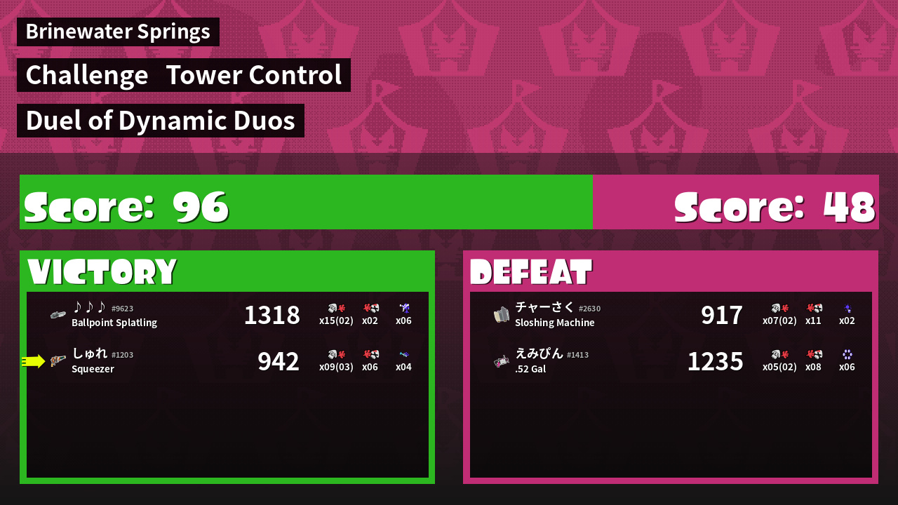 | Medals | Record-Score Setter #1 Popular Target #1 Splat Assister | ||