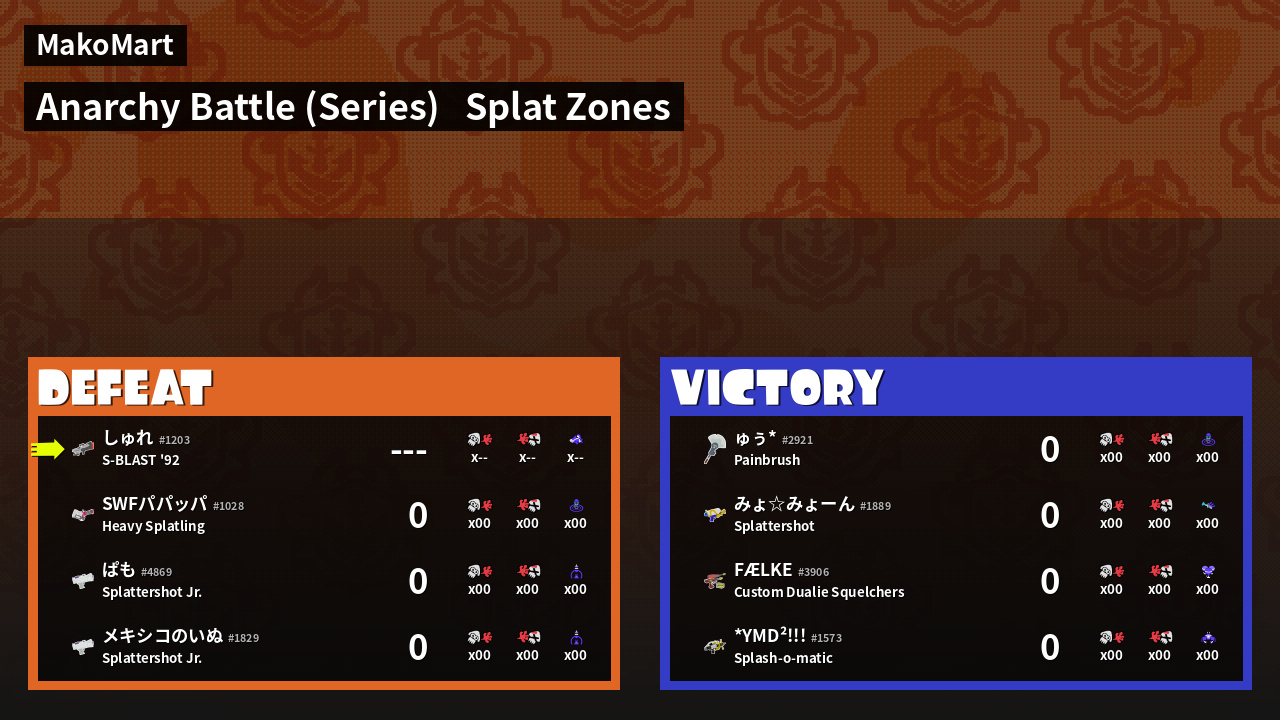 | Mode | Splat Zones - Anarchy Battle (Series) | ||