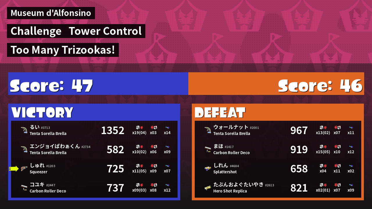 | Medals | #1 Splat Assister #1 Tower Stopper #1 Ground Traveler | ||