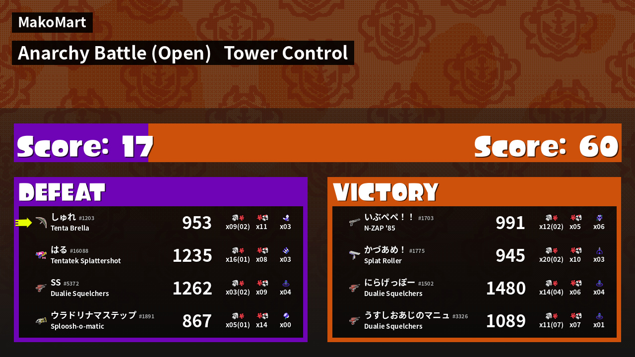 | Mode | Tower Control - Anarchy Battle (Open) | ||