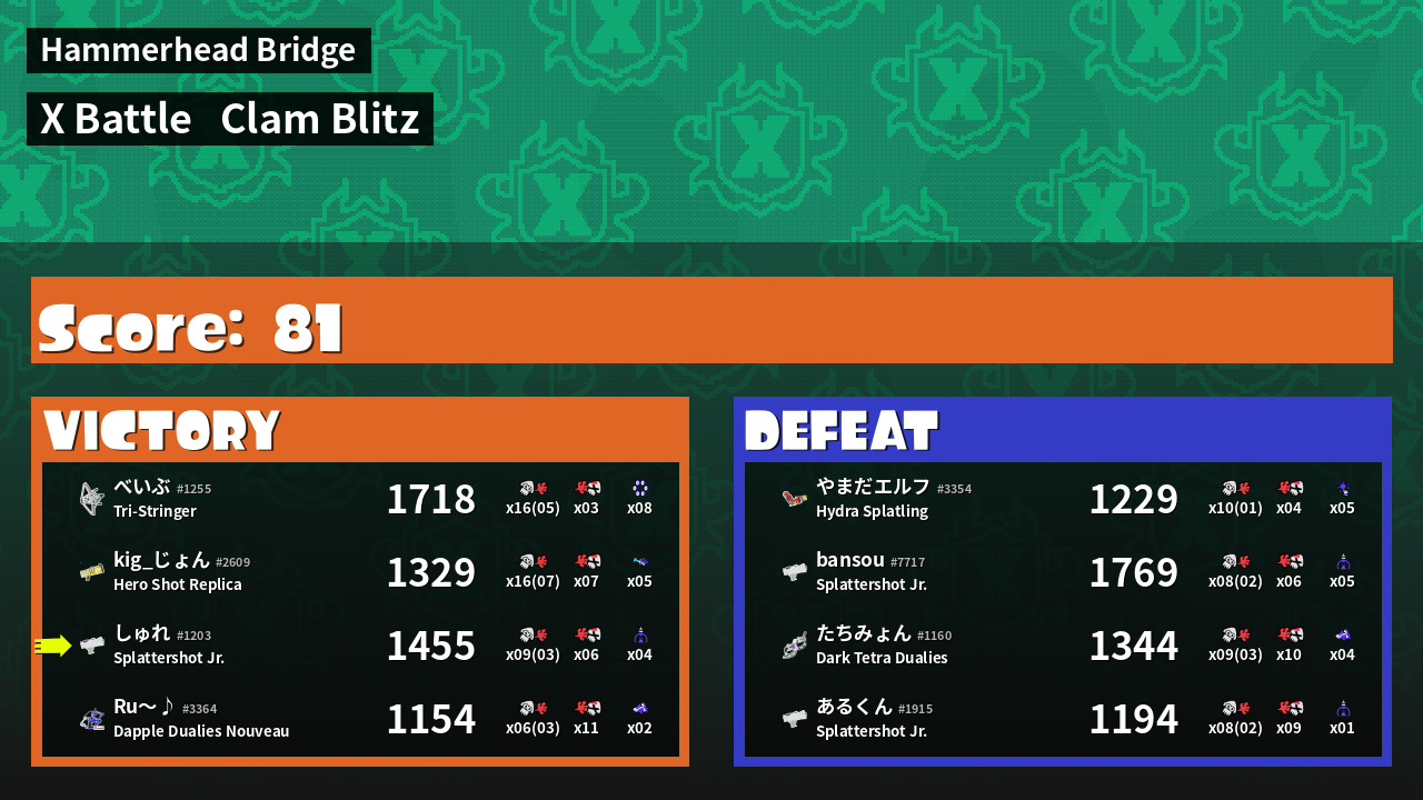| Weapon | Splattershot Jr. ( Splat Bomb / Big Bubbler) | ||