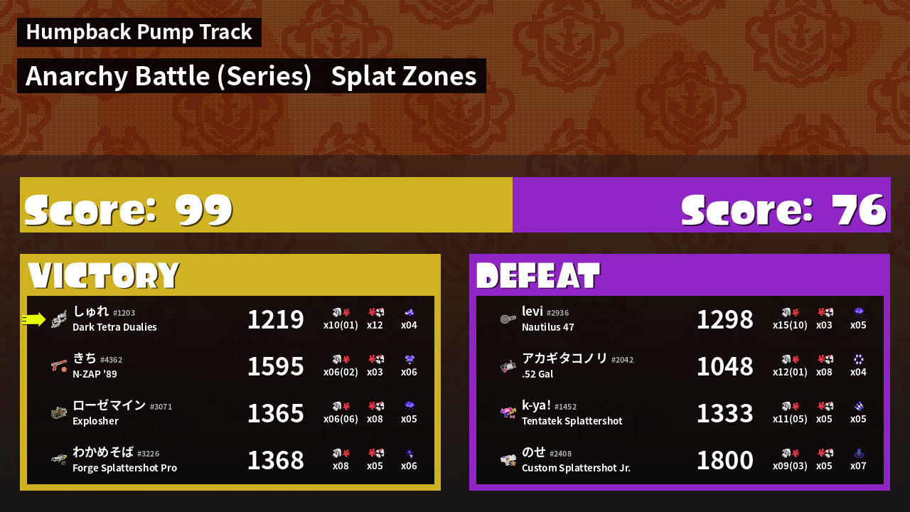 | Mode | Splat Zones - Anarchy Battle (Series) | ||