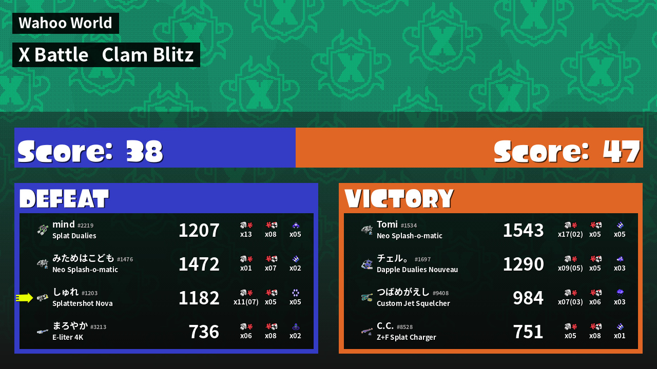 | Medals | #1 Clam Carrier #1 Splat Assister #1 Ground Traveler | ||